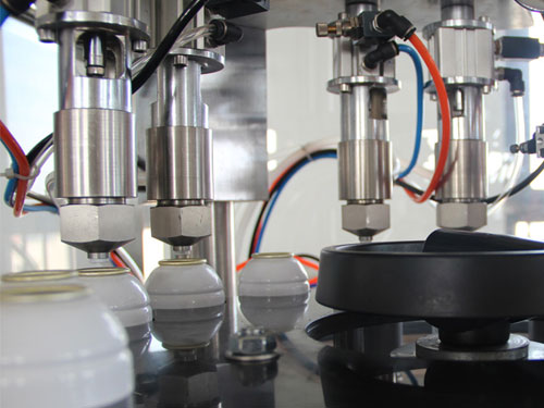 我們知道氣霧劑灌裝機(jī)是專門用來灌裝氣霧劑產(chǎn)品的設(shè)備,由耐壓容器、閥門系統(tǒng)、拋射劑氣體、劑料等組成的可以成霧狀噴出的產(chǎn)品。因諸多氣霧劑產(chǎn)品在生產(chǎn)時經(jīng)常會灌裝易燃易爆的物質(zhì)。故采用全氣壓傳動的機(jī)械結(jié)構(gòu)模式以徹底杜絕因用電時產(chǎn)生電火花的不安全因素,從而達(dá)到防火防爆的要求。